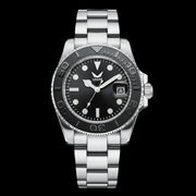 Encased in a robust 316L stainless steel case with a matching solid stainless steel band, this quartz watch boasts both durability and a sleek look. Powered by a precise Japanese Miyota movement, it offers reliable timekeeping and longevity. The watch features a water droplet magnifying calendar window for effortless date reading. It also boasts a strong blue luminous effect on the hands and markers for visibility in low light. This quartz watch’s hardened mineral crystal or optional sapphire crystal glass cover provides superior clarity and scratch resistance. With a water resistance rating of 3-5ATM, this watch withstands splashes and brief immersions.